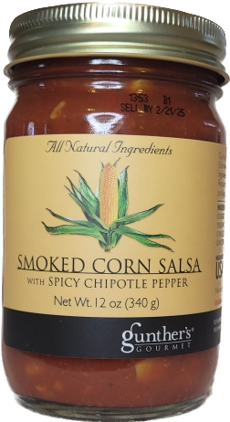 A chunky combination of smoked corn, tomatoes and southwest flavorings. The heat will absolutely sneak up on you.